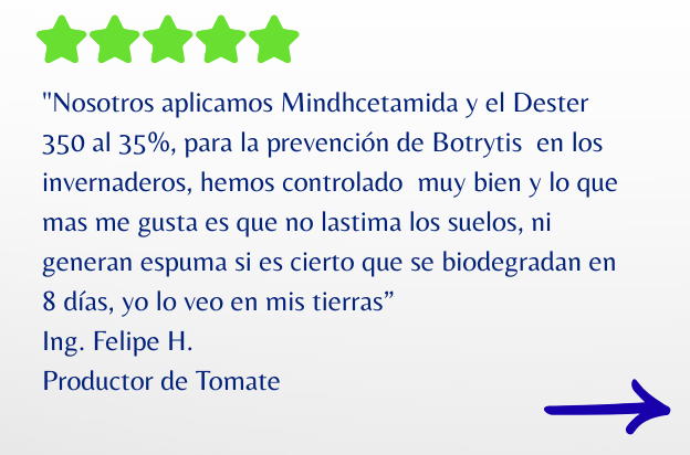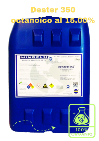Dester 350 ácido peracético octanoíco al 15% , con espectro biocida de pH de 1 a 14, con fuerza desinfectante 10 veces mayor a los peracéticos normales, actúa en 15 segundos y pteoge hasta por 7 días por dosis foliar.
