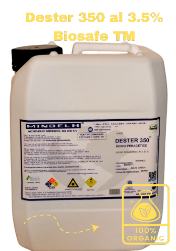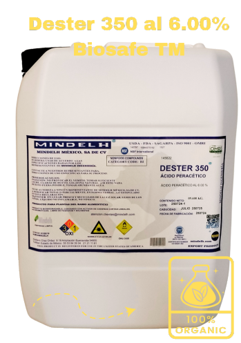 Nuestro biocida a base de ácido peracético al 3.5% estabilizado está diseñado para un control antimicrobiano total. Con un rango de acción de pH 1–14 y un mecanismo de óxido-reducción, elimina bacterias, virus, esporas, hongos y hasta pirógenos, a partir de 15 segundos, manteniendo su efecto protector hasta por 12 horas.