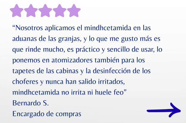 Todos sabemos que necesitas dosificar a mas de 5ml/ lto de cuaternarios de 4ta y 5 ta para que medio cumplen… y luego está Mindhcetamida Cuaternario de amonio de séptima generación, que cumple con creces.